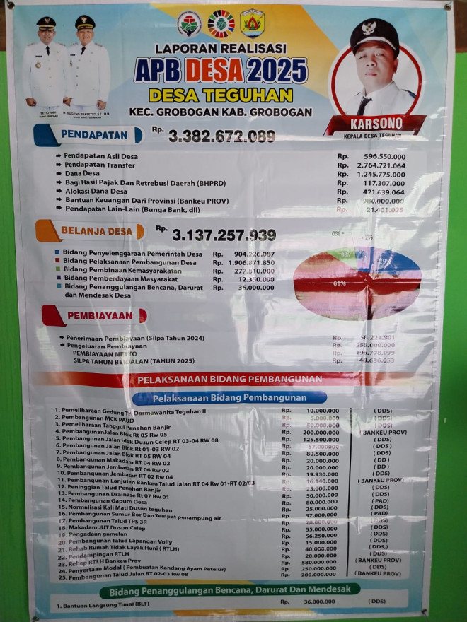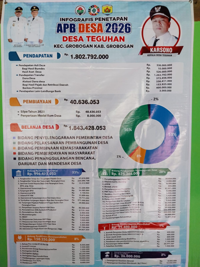 T E G U H A N – Dengan telah dilaksanakannya kegiatan anggaran pendapatan dan belanja desa ( APBDes) tahun anggaran 2025 maka telah dilaksanakan Musyawarah Desa Serah Terima (MDST) Pelaksanaan Kegiatan Pembangunan APBDesa Tahun 2025 dan Sosialisasi Kegiatan Pembangunan Tahun 2026 serta Musyawarah Desa Tahunan Bumdesa Tahun 2025 Desa Teguhan Kecamatan Grobogan di pendopo Balai Desa Teguhan pada Rabu (11/02).